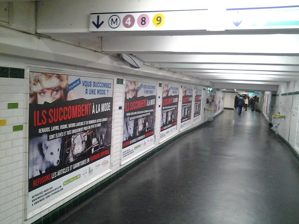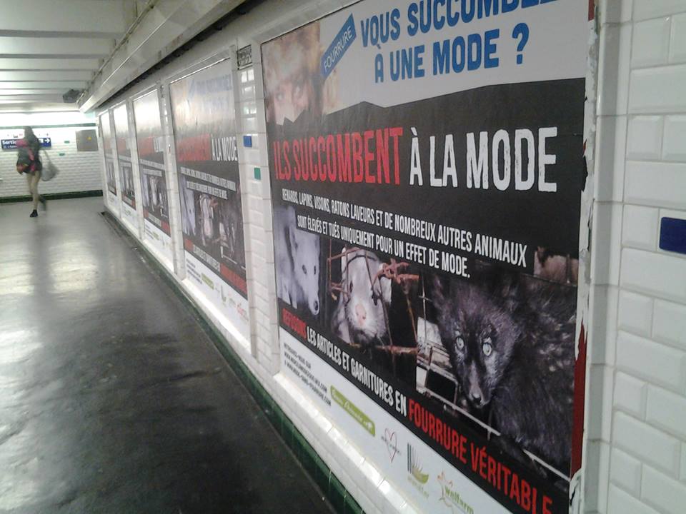Les affiches choc, grand format, recouvrent les murs de sept grandes stations de la capitale, qui bénéficient d’une importante affluence : Charles de Gaulle, Franklin Roosevelt, Jaurès, Montparnasse, Nation, Porte d’Orléans et Strasbourg-Saint-Denis.